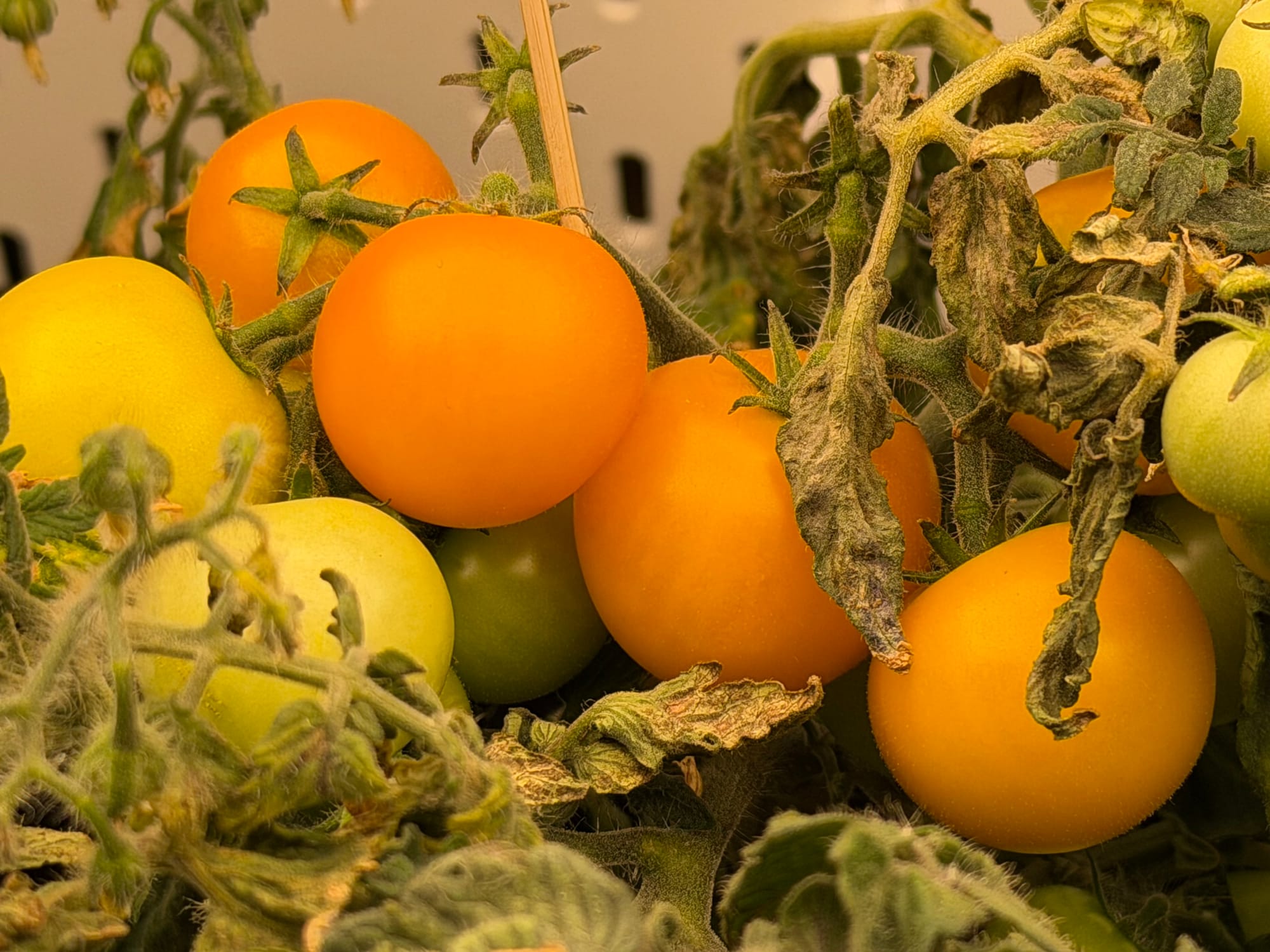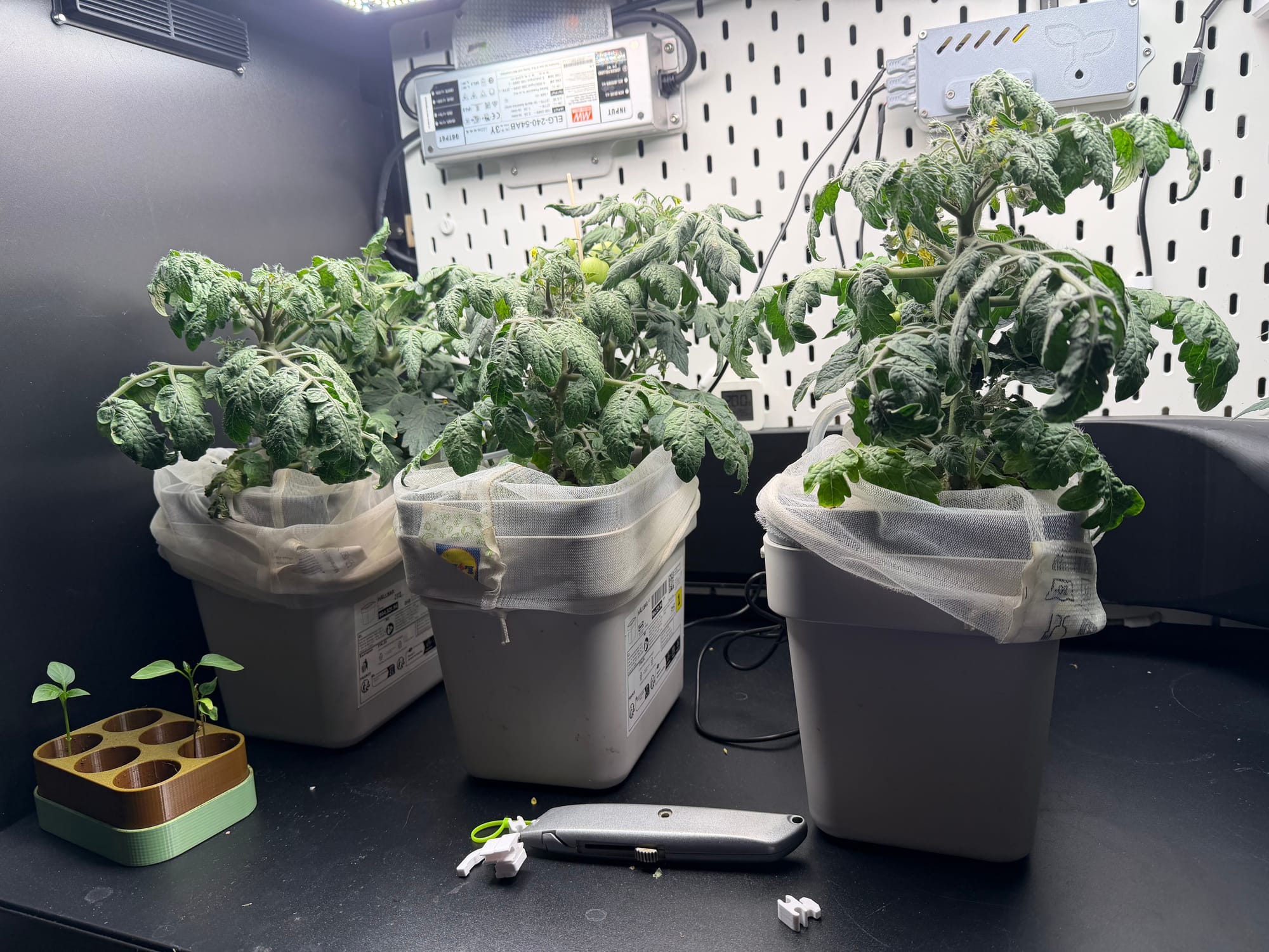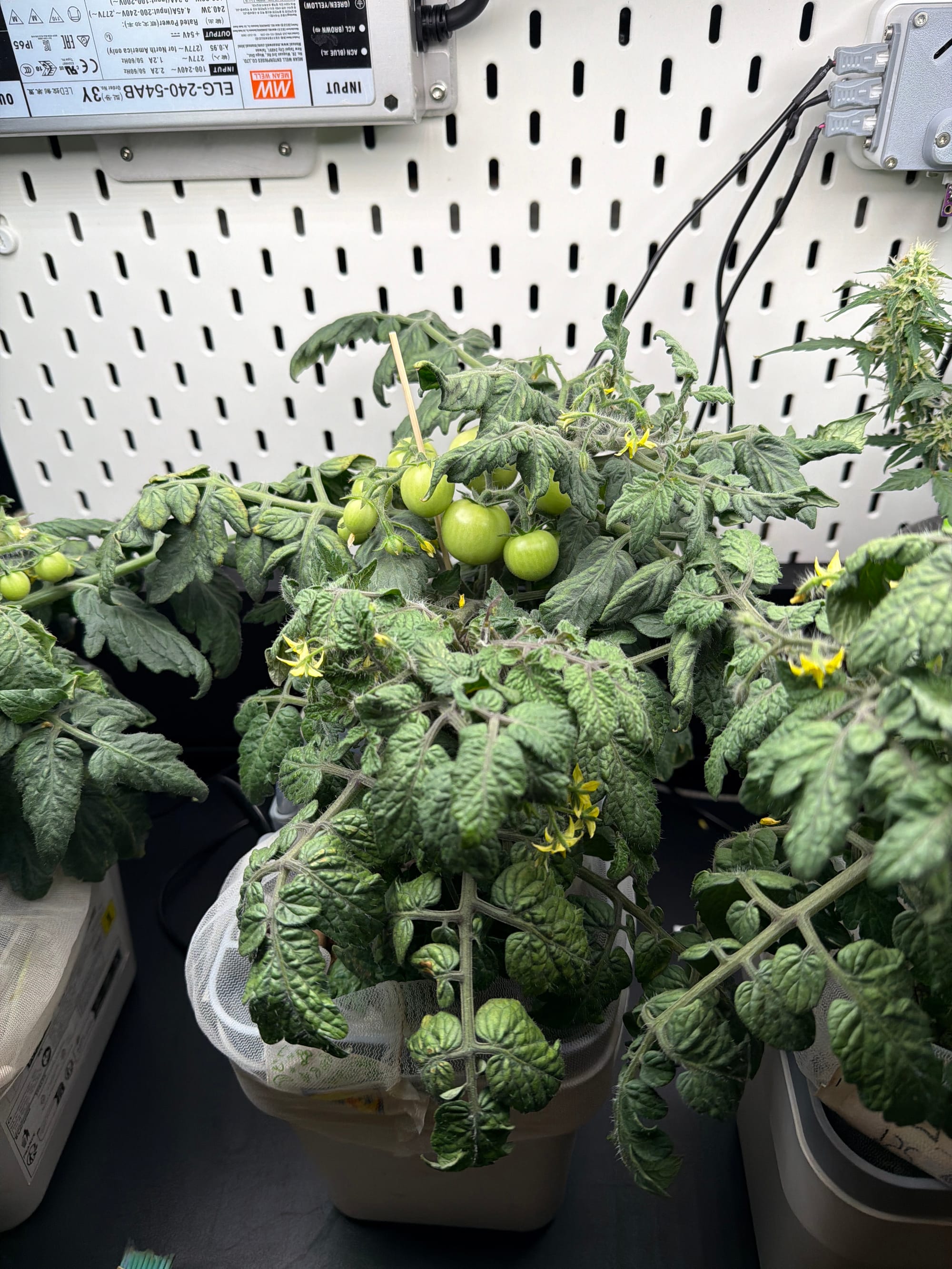 But it wasn’t all perfect. I discovered pretty early that mixing Micro-Tom and Venus in one pot is not a very optimal setup. The Micro-Tom is a lab rat of a tomato. It’s resilient and hungry. I always run these at a higher EC, around 1.8. But Venus is a regular dwarf tomato for your balcony. And it doesn’t like high EC. It prefers to run at 1.3–1.6. So I had to make a choice. Run it high in favor of Micro-Tom, or run it low, have great yellow Venuses and subpar Micro-Tom. I chose the latter.