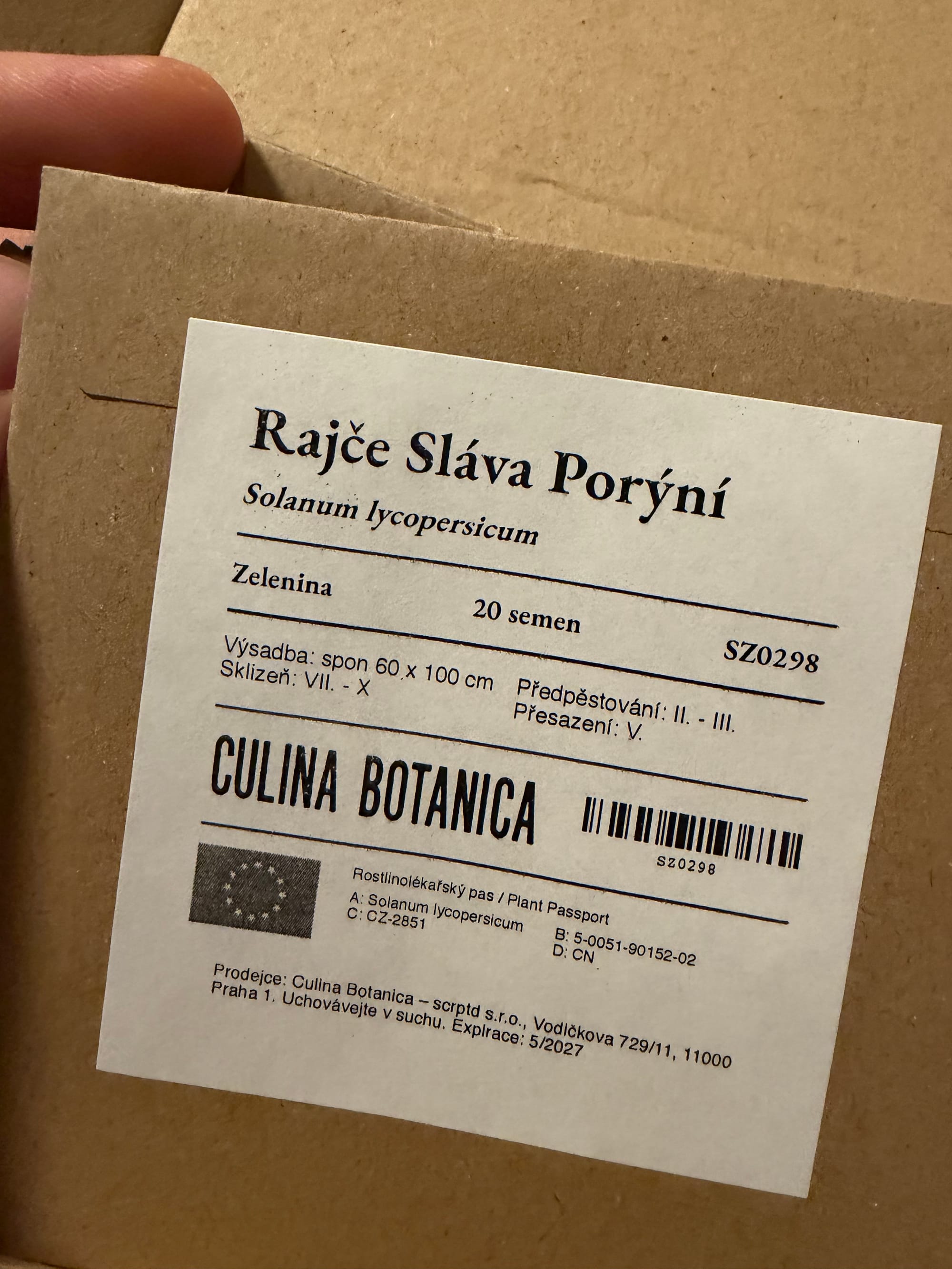 I ordered mostly cucumbers, carrots, and kohlrabi because it’s really hard to collect seeds from all of them. From my favorite tomato seed supplier, permaseminka.cz, I ordered a few packs of Sunviva, and that’s it. I actually got an excessive amount of tomato seeds from my lovely girlfriend for my birthday. She was probably saying something nice, too, but I was overwhelmed by the sheer number of sixteen different varieties. Sixteen! So I don’t need more tomato seeds this year.