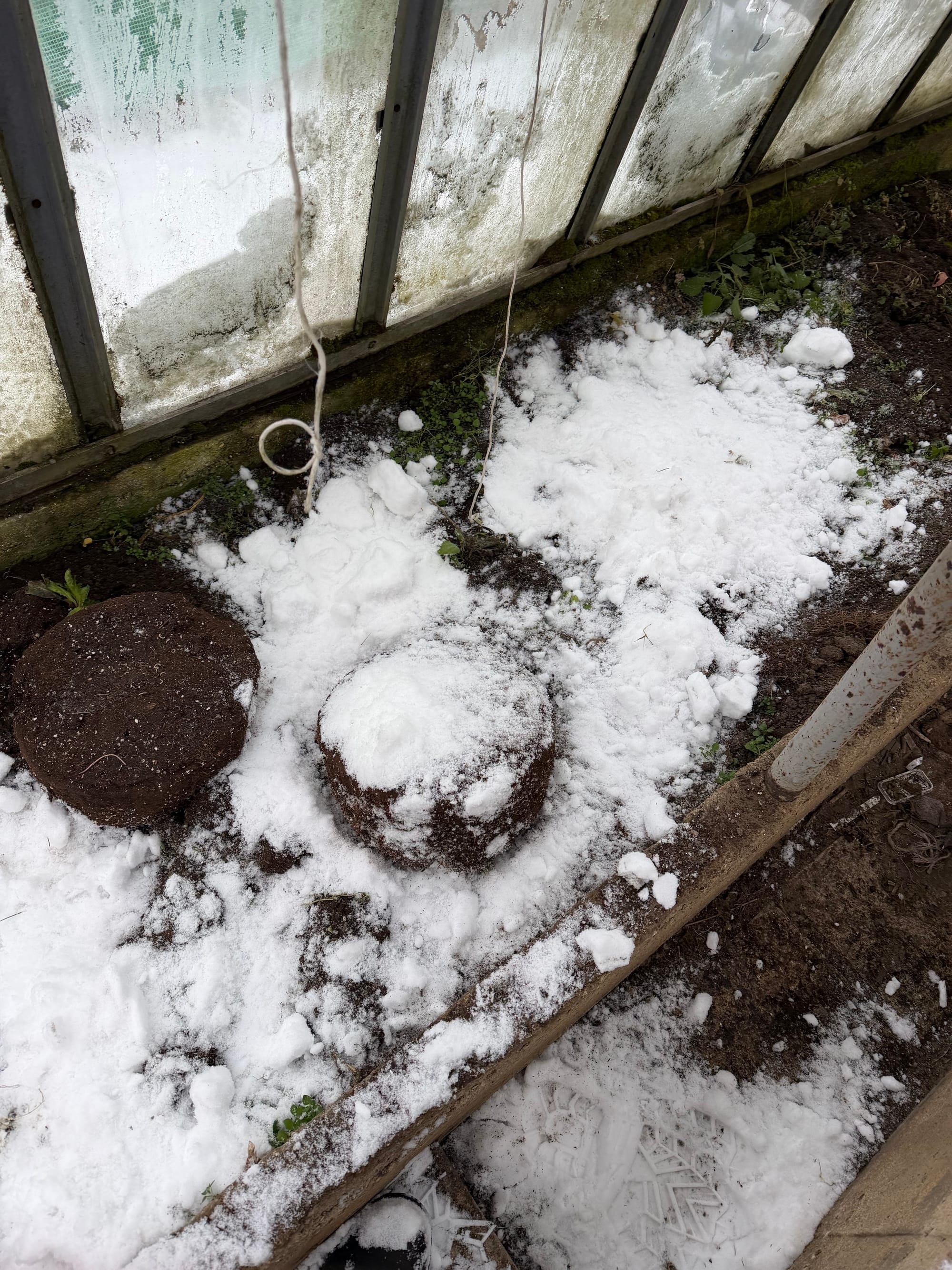 Snow is a great way how to get water into greenhouse | Burning sulfur wicks to disinfect the hell out of the air and glass.