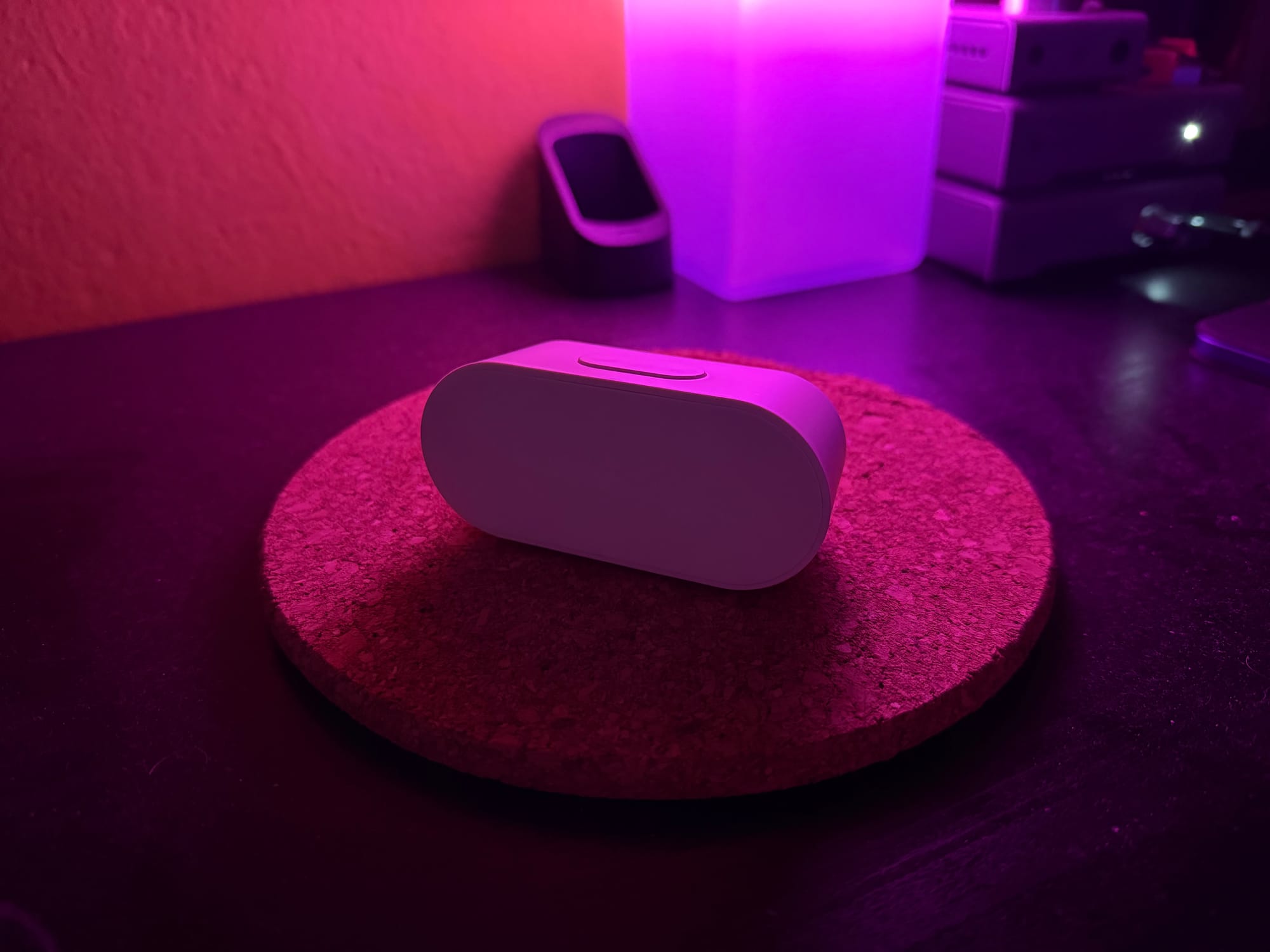 The ALPSTUGA’s design fits nicely with the new aesthetic IKEA is pushing: simple, uniform surfaces, minimal controls, and elements. It’s a pill. A white pill, with no visible interface. There’s only one button visible at first glance.